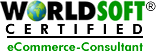 Nach bestandener Online-Prüfung erhalten Sie von Worldsoft das Recht sich Worldsoft Certified eCommerce-Consultant zu nennen. Das entsprechende Logo wird online bereitgestellt.
